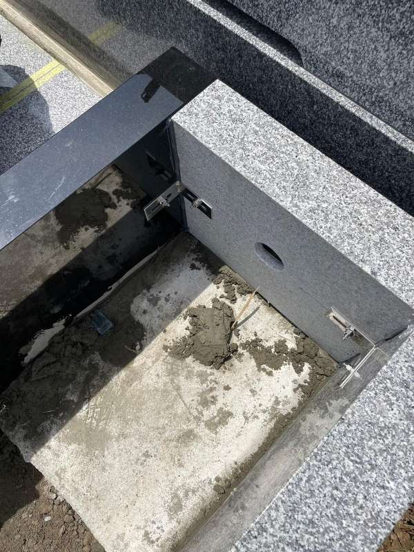 最後に全体に目地を入れて、花立や香炉などを設置したら工事完了です。石碑はインド産LK2という黒御影石と、同じくインド産のアーバングレーを使用しました。