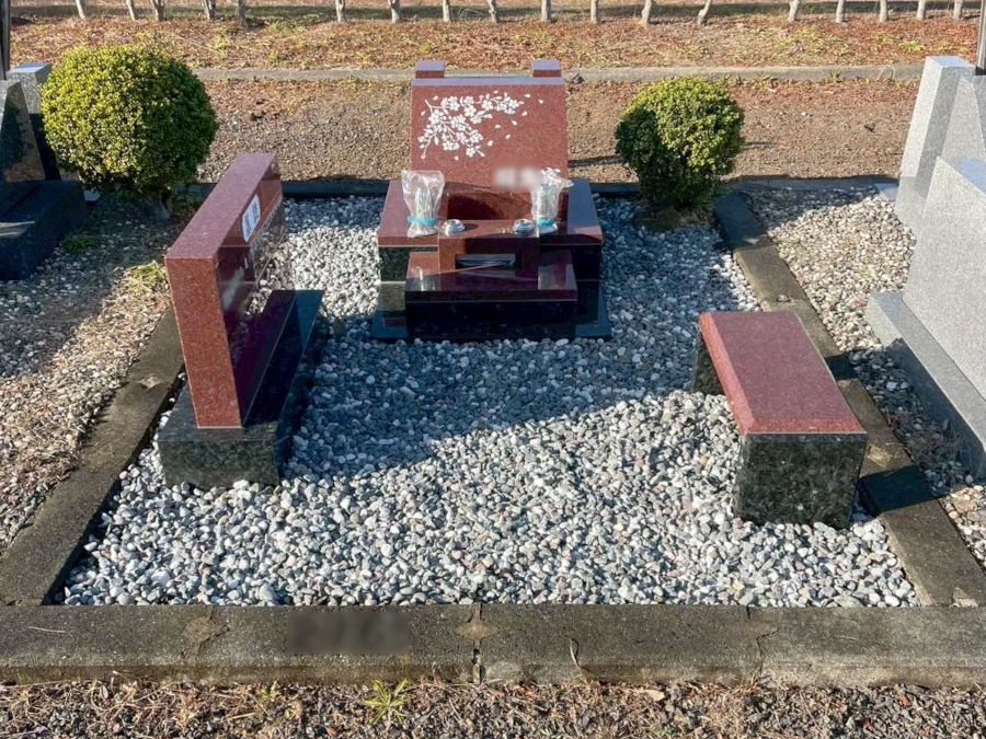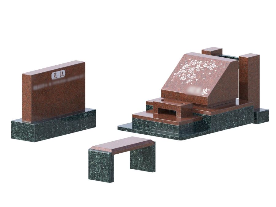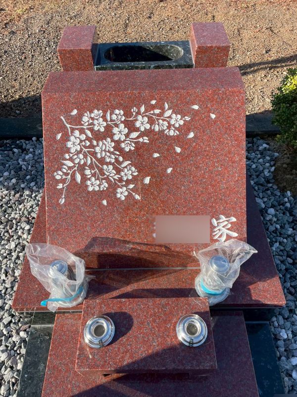 桜の花がたくさんちりばめられた、華やかで明るい洋型墓石!郡山市地域墓地
